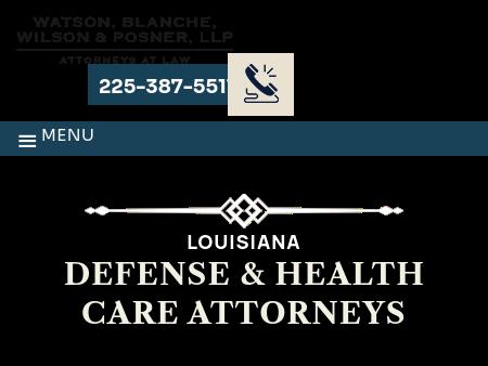 133. Watson, Blanche, Wilson & Posner, LLP Louisiana Health Care Law Attorney | Watson, Blanche, Wilson & Posner, LLP | Baton Rouge Health care or business law issue in Baton Rouge, Louisiana, or nearby? Call Watson, Blanche, Wilson & Posner, LLP, at 225-387-5511 for a consultation.