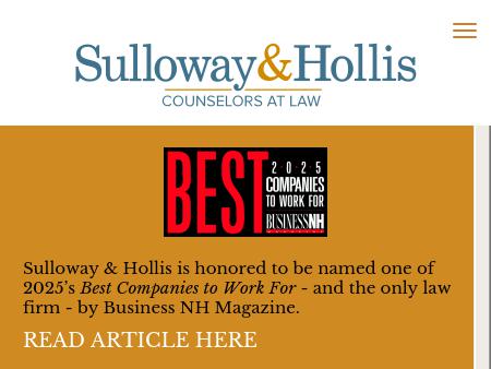65. Sulloway & Hollis, P.L.L.C. Sulloway & Hollis, P.L.L.C. - Sulloway & Hollis As a preeminent law firm in northern New England, Sulloway offers a wide range of services to our clients. Our lawyers represent businesses, public entities, non-profit organizations, and individuals in business, regulatory, and litigation matters. We recognize that all legal issues a client faces do not fall neatly into one practice area, so we work collaboratively to deliver comprehensive legal solutions tailored to our clients' needs.