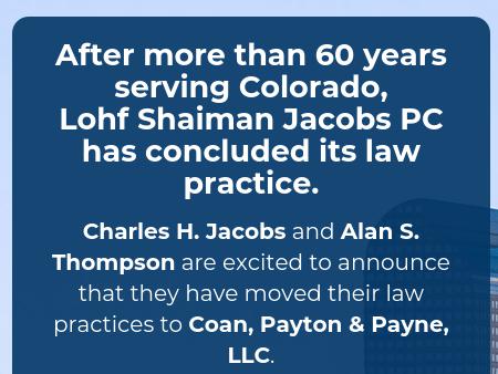 147. Lohf Shaiman Jacobs Hyman & Feiger PC Denver Business Lawyers | Aurora Business Attorneys | Weld County CO Business Dispute Lawyers Call a Denver business lawyer at Lohf Shaiman Jacobs Hyman & Feiger PC, in Denver. Colorado, at 800-772-5434.
